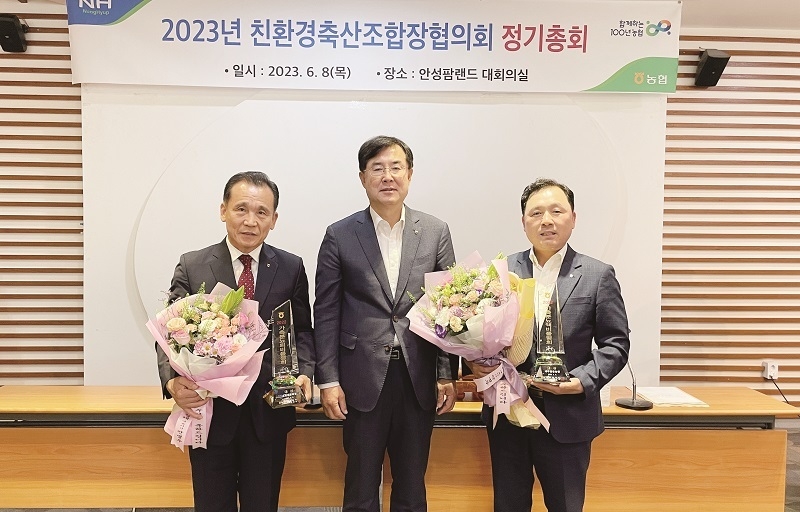 친환경축산조합장협의회(회장 이재식·부경양돈조합장)는 지난 8일 농협안성팜랜드 대회의실에서 정기총회를 개최하고, 2022년 가축분뇨 퇴비, 액비 품평회 시상식<사진>을 가졌다.
