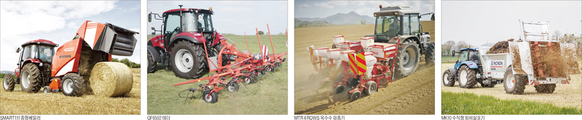 KUHN사의 컨디셔너로 뛰어난 내구성으로 국내 지형에 맞게 개선된 제품으로 완벽한 컨디셔닝 작업을 제공한다. △상하좌우(3D) 지면에 맞는 롤링 기능(플로팅)-지면 모양에 맞게 부드럽게 타고 넘어가며 작물을 일정한 높이로 예취 △커터 바 충격 시 디스크 축만 파손되어 기계 보호 △원터치 칼날 교체 방식으로 간편하게 칼날 교체 △스틸 바 타입의 컨디셔너·더욱 완벽한 컨디셔닝 작업이 가능하며 로터 속도를 작물의 양과 종류에 맞추어 조절할 수 있어 최적화된 작업이 가능하다.