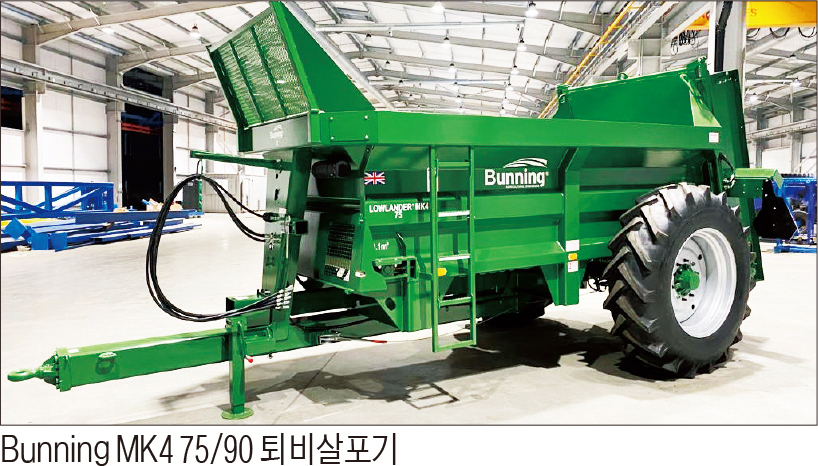 내구성이 높은 Bunning MK4 75/90 퇴비살포기는 Boron/붕소(장갑차, 자동차, 방탄복 재질)를 사용하여 수직 오거의 강도와 수명을 연장하고 열처리된 강철 boron을 사용하여 변질 없이 넓고 균일하고 안전하고 살포와 기기 유지보수비가 적다. Bunning 살포기 오거 기어박스는 충격 보호를 위해 특별히 개발된 샤프트 사이에 고무 쿠션을 장착하여 기어박스의 안전성을 극대화하였다.