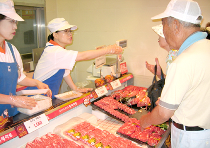 지난 13일부터 전국 53개 점포에서 미국의 콘아그라사 브랜드인 ‘스위프트’ 쇠고기를 일제히 판매하기 시작한 롯데마트. 이에 같은 날 ‘광우병 위험 미국산 쇠고기 국민감시단’과 ‘한미FTA저지 범국민대책위’ 소속 회원들은 롯데마트 서울역점 앞에서 기자회견을 갖고 반대시위를 벌이며 “국민건강을 무시한 비윤리적 상행위를 즉각 중단할 것”을 요구했다. 서울역점 외에도 광주 상무점과 월드컵점, 안성점 등 6개 점포에 몰려온 시민사회단체들의 항의 및 축산농가들의 ‘쇠똥투척’ 등으로 인해 롯데마트는 지난 13일 이후로 16일 현재까지 이들 6개 점에서의 미국산 쇠고기 판매를 잠정중단시켰다. 그러나 이들 6개 점을 제외한 나머지 점포에서는 냉장육 초동물량 10톤을 모두 소진하는 판매실적을 올렸다. 롯데마트 측은 지난 15일까지 미국산 쇠고기를 판매하기 시작한지 3일 동안 냉장육 10톤, 냉동육 10톤이 판매됐고, 3일간 매출은 평소 수입쇠고기 판매액의 3배에 해당하는 4억5천만원 정도라고 밝혔다. 롯데마트 관계자는 “1인당 1kg까지만 사갈 수 있도록 제한했음에도 냉장육 물량이 모두 소진된 상태에서 여전히 찾는 이들이 많다”면서 “20일 전에는 두 번째 물량으로 냉장육 30톤을 공수해 판매를 재개할 방침”이라고 말했다. 한편 미국산 쇠고기에 대한 일반 소비자와 시민사회단체들의 반응이 엇갈리고 있는데 대해 롯데마트는 ‘단체들을 설득하면서도 최대한 판매하자’는 내부방침을 정한 것으로 알려졌다. 이밖에 유명백화점과 다른 대형할인마트들도 선두를 끊은 롯데마트에 힘입어 내달부터는 미국산 쇠고기 판매에 본격적으로 나설 뜻을 밝히고 나서 비상한 관심을 모으고 있다. |