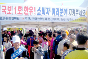 한우협회 논산시지부는 지난달 11일과 12일 이틀간 강경 금강포구에 마련된 2008년강경발효젓갈축제장에서 한우자조금관리위원회의 후원으로 논산계룡축협(조합장 임영봉)과 공동으로 한우고기무료시식회를 개최, 이 땅에서 키운 한우고기의 안전성을 집중 홍보했다. 이틀에 걸친 한우고기무료시식회에는 200여kg의 불고기와 특별히 논산시지부에서 한우 한 마리를 제공했다. |