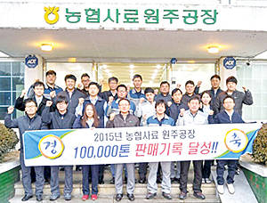 농협사료 원주공장은 지난 5월 월 1만톤 판매기록 달성하며 엄청난 신장세를 이어가고 있으며, 더불어 현재 최대 판매량을 매월 갱신하고 있다. 11월에는 최초로 판매량 10만톤 기록을 달성하였다.