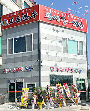 이날 개점한 축산물 판매장 및 전문식당은 보은군 한우농가 110명이 공동 출자해 총 8억8천만원(보조 2억4천5백만원, 자담 6억3천500만원)을 투입, 총 254평 규모로 1층에 축산물판매장 및 사무실, 2층에 한우전문 자율식당(100석 규모)이 운영된다.