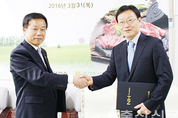 경산축협이 지역 농축산물 소비 활성화를 위해 팔을 걷어 올렸다. 경산축협(조합장 백운학)은 지난달 31일 경북학숙(경북장학회)과 지역 우수 농축산물 소비 확대를 위한 업무협약을 체결사진했다. 경북학숙은 경상북도가 지역인재 육성을 위해 건립한 대학생 기숙사로 경산시 진량읍에 1998년 3월 개관돼 18년째 운영되고 있다. 백운학 조합장과 정강숭 경북학숙 원장은 이번 업무협약을 통해 食사랑 운동 확산을 위한 ‘지역 먹거리 소비촉진 캠페인’에 적극 동참할 수 있는 계기를 마련하고 지역 농축산물 소비 활성화에 최선을 다 하기로 결의했다. 정강수 경북학숙 원장은 “지역에서 생산된 우수 농축산물 제공을 통해 입사생들의 만족도를 높이고 로컬푸드 소비 촉진에도 일익을 담당 하겠다”며 이번 업무협약 체결의 의미를 밝혔다.
