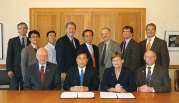 농촌진흥청은 농축산분야에서 세계 최고 수준을 자랑하는 아이오와주립대학교와 축산발전을 도모하기위해 지난 3일, 아이오와주립대학교에서 연구협력 양해각서(MOU) 체결식을 가졌다.이번 MOU는 연구원의 장·단기 교류를 비롯한 축산관련 공동연구와 연구원들의 학위 취득과정 개발 등 두 기관 간 다양한 형태의 협력 안을 주 골자로 하고 있다.이번 협약을 통해 농촌진흥청 국립축산과학원과 미국 아이오와 주립대학교 농업생명대학, 수의대학은 향후 5년 동안 축산분야 연구, 교육, 농가 지도 등의 프로그램 개발 등을 함께 하게 된다.농촌진흥청과 아이오와주립대학은 FMD 등 악성 질병 발생 시 죽은 가축을 환경 친화적으로 처리할 수 있는 기술을 개발하기 위해 농진청이 보유한 ‘사축 혐기소화 기술’과 아이오와주립대학교의 ‘사축 내 병원성 미생물 사멸기술과