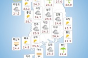 ※ 06월 27일부터 06월 29일까지의 전망입니다. < 중점 사항 > ○ 내일 오전까지 제주도와 남부지방에, 모레 밤부터 글피 사이 전국에 정체전선의 영향으로 비가 내리겠고, 특히, 오늘 늦은 오후까지 제주도를 중심으로 매우 강하고 많은 비가 내리는 곳이 있겠습니다. ○ 오늘은 중부지방 중심, 내일은 전국 대부분 지역에서, 모레는 중부지방과 경북권을 중심으로 낮 기온이 30도 이상, 최고체감온도가 31도 내외로 올라 덥겠습니다. < 강수 및 유의 사항 > ○ (오늘~내일 오전 비) 오늘(27일)은 제주도에 비가 내리겠고, 오전(06~12시)부터 전남해안과 경남서부남해안, 오후(12~18시)부터 그 밖의 전남권과 경남권, 저녁(18~21시)부터 경북권남부에도 비가 내리는 곳이 있겠습니다. - 이 비는 내일(28일) 새벽(00~06시)에 대부분 그치겠으나, 제주도는 오전(06~12시)까지 이어지는 곳이 있겠습니다. - 한편, 오늘 늦은 오후(15~18시)부터 저녁(18~21시) 사이 전북남동부에는 비가 조금 내리는 곳이 있겠습니다. * 예상 강수량(27~28일 오전) - (전라권) 전남남해안: 20~60mm/ 광주.전남(남해안 제외): 5