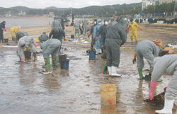 양계협회 충남육계지부연합회 박태원 회장을 비롯해 회원 40여명은 지난 13일 충남 태안 만리포 해수욕장을 찾아 방제작업에 팔을 걷어 붙였다. 또 20일에도 40여명의 회원이 방제작업에 동참했다. 충남육계지부연합회는 인근 태안 앞바다에서 사고가 일어나 같은 지역에서 발생한 사고인 만큼 남의일이 아니라 바로 내일이라는 마음가짐으로 자원봉사에 나서게 됐다. 이날 방제작업에 나선 박태원 회장은 “뉴스로만 접하다가 막상 현장에서 직접 오염된 갯벌을 보니 참담하기 그지없었다”며 “작은 힘이지만 앞으로도 충남육계지부 회원들은 방제작업 자원봉사를 지속적으로 실시해 나갈 것”이라고 말했다. |