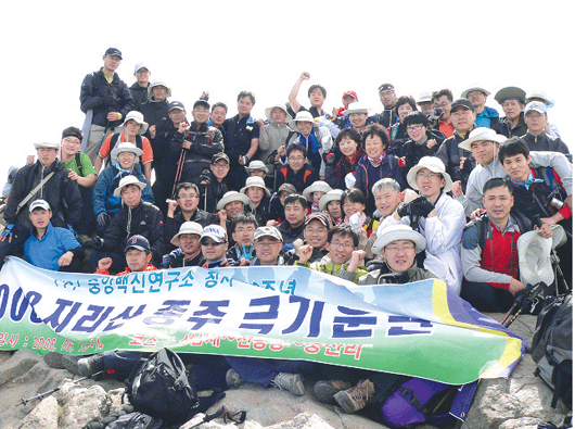 중앙백신연구소는 지난 12일 사내에서 창립 40주년 기념행사를 가진 뒤 개별의사에 따라 가정 사정이나 건강문제가 있는 이들을 제외한 총 62명의 도전자가 밤 12시 지리산 성삼재로 출발하는 버스에 올랐다. 중앙백신연구소의 지리산 종주도전은 전임직원들을 대상으로 매년 실시돼 온 멤버십 훈련의 하나이다. 지난 2004년 가을 시도된 지리산 종주가 기상악화로 아쉽게 실패한 것에 기인하고 있다. 그리고 언젠가 반드시 종주를 성공하고야 말겠다는 윤인중 대표의 굳은 의지에 따라 4년 만에 이뤄진 도전이었다. 실패 당시에는 2박 3일의 다소 여유 있는 일정이었다. 그러나 이번에는 매년 시도된 등반훈련을 바탕으로 빡빡한 1박 2일의 일정으로 도전하게 됐다. 13일 새벽 4시 성삼재 휴게소에 도착해 간단한 스트레칭으로 몸을 풀었고 이후 4개 조를 구성해 출발했다. 코스는 성삼재 → 노고단 → 연화천 산장(중식) → 칠선봉 → 세석산장(숙박) → 촛대봉(일출감상) → 장터목대피소(조식) → 천왕봉 → 중산리 등 약 35㎞ 구간이다. 성삼재에서 시작된 산행은 14일 오후 12시 30분이 돼서야 중산리 하산까지 모두 안전하게 마칠 수 있었다. 중앙백신연구소는 2개월 전부터 조별로 최소 2∼3회의 예비 등산훈련을 하는 등 종주 성공을 위해 사전준비를 철저히 해 왔다. 회사관계자는 이번 종주 성공을 통해 강력한 팀워크를 확인할 수 있었고 개인적으로도 오래 지워지지 않을 아름다운 추억을 만들 수 있게 됐다고 밝혔다. |