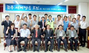 농촌진흥청(청장 이수화) 한국농업대학은 지난 21일부터 23일까지 한우산업의 위기를 극복하기 위해 ‘제1기 한우 가치혁신 MBA 과정’<사진>을 개최했다. 이번에 실시한 ‘한우 가치혁신 MBA 과정’은 한우 전문가와 한우브랜드 조합을 초청해 명품으로 위기를 극복하는 방안을 모색했다. 이날 전국 최고명품브랜드의 신기술과 아이디어 등 상호정보를 공유하고 교류학습을 통해 지속 가능한 한우산업을 선도할 전문경영인을 육성하는데 의미를 부여했다. 이번 행사에서는 ‘한우산업의 현재와 미래, 명품한우 만들기, 사료비 절감방안’ 등 5개 주제를 선정하여 토론이 진행됐다. 또한, 전국에서 생산한 고품질 한우를 맛보면서 브랜드의 노하우를 직접 확인할 수 있도록 소비자대표도 참여하는 시식회도 펼쳤다. 야간에는 인근 찜질방을 빌려 MBA과정 전체가 자유스러운 분위기에서 열띤 토론을 통해 각 브랜드의 운영기술을 습득하는 기회를 했다. 김양식 농업대학장은 “제1기 한우 가치혁신 MBA 과정은 위기의 우리 한우산업이 오히려 이를 기회로 삼아 해외에 수출할 수 있는 방안을 모색하는 자리가 될 것이며 수출을 위한 단일브랜드화도 논의되는 등 한우산업의 기본 틀을 깨는 계기가 될 것”이라고 말했다. |