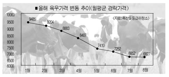 육우가격 연초 대비 30% 급락…농가 입식마저 꺼려 미산 쇠고기 수입재개와 원산지 표시제 확대 시행 이후 안정적인 판로를 확보하지 못하고 있는 육우농가들의 어려움이 지속되고 있는 것으로 나타났다. 특히 사료값 폭등으로 인해 육우농가들의 수익성이 크게 악화됨에 따라 입식마저 꺼리고 있어 젖소 송아지 가격도 바닥에서 회복되지 못하고 있다. 축산물등급판정소에 따르면 육우가격은 연초 대비 30% 가까이 급락한 것으로 나타났다. 1월 평균 9천485원 이었던 육우 거세 경락가격이 8월에는 29.1%가 하락한 6천827원 이었으며 지난해 8월 평균 7천725원에 비해서도 12%가 떨어졌다. 이처럼 가격이 크게 하락한 것은 미산 쇠고기 수입재개로 인한 원산지표시제 확대 시행으로 인해 육우고기 수요가 크게 줄어들었기 때문이다. 육우업계 관계자들은 “원산지표시제 확대 시행 이전에는 대중음식점에서 ‘국내산’으로 표기하던 것을 ‘국내산육우’로 표시하게 된 이후 육우고기 사용을 꺼리고 있다”며 “이로 인해 육우 소비 시장이 없어진 것도 가격 하락을 부추기고 있다”고 지적했다. 여기에 농후사료 위주로 단기간에 비육시켜 출하시키는 육우의 특성상 사료값 폭등도 육우농가들의 어려움을 가중시키고 있다는 지적이다. 낙농육우협회가 분석한 육우농가 수익성 분석 자료에 따르면 두당 생산비는 375만7천원으로 추정하고 있으며 이중 68%인 256만5천원이 농후사료 비용인 것으로 나타났다. 이로 인해 육우농가들은 현재 두당 60~70만원의 적자를 보고 있는 실정이라는 것이 업계 관계자들의 설명이다. 하지만 이 같은 현실과 달리 향후에도 뚜렷한 대책이 없다는 것이 육우농가들을 더욱 암담하게 만들고 있다. 이로 인해 젖소 송아지 가격이 10만원대에서 형성되고 있음에도 불구하고 입식을 꺼리고 있는 실정이다. 실제 육우농가들은 “50만~60만원대에 달하던 송아지 가격이 10만원대로 하락한 것은 육우농가 입장에서는 기회 요인이 될 수 있다”면서도 “사료값 폭등과 향후 불투명한 경기로 인해 많은 육우농가들이 입식을 망설이고 있다”고 말했다. 이와 관련 청원육우영농조합법인 강태윤 대표는 “전국 최대 육우생산지인 청원의 육우농가들은 육우브랜드 ‘육품정’을 통해 경쟁력 확보에 나섰다”면서 “하지만 현실은 한우와 수입육 사이에서 판로를 확보하지 못하고 어려움을 겪고 있어 육우 사육을 포기하는 농가들도 속출하고 있다”고 말했다. 또 낙농육우협회 육우분과 나기혁 위원장은 “미산 쇠고기 수입 재개 이후 원산지표시제 확대 시행으로 인해 육우가 갈길을 잃어버렸다”며 “육우산업의 안정을 위한 특단의 대책이 필요하다”고 강조했다. |