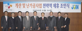 CJ제일제당(대표 김진수)과 조인(주)(대표 한재권)은 지난달 20일 서울 남산 소재 CJ제일제당 본사에서 양사 대표를 포함한 관계자 50여명이 참석한 가운데 브랜드란 사업 전반에 걸친 전략적 제휴를 체결했다. 이번 제휴를 통해 조인(주)이 구매·생산·기술 부문을 주로 담당하되 마케팅·영업·R&D 및 사료 부문은 CJ제일제당을 중심으로 브랜드란 사업을 전개해 나가기로 했다. 이처럼 생산과 영업·마케팅 부문에서 각각 최고의 입지를 구축하고 있는 두회사가 공동보조를 맞추게 됨에 따라 브랜드란 시장에 큰 영향이 예상된다. 실제로 조인의 경우 CJ제일제당의 농수축산물 유통사업을 담당해온 ‘돈돈팜’의 계란영업장인수를 추진하는 등 안정적인 판매처 확보 및 생산기반 확대를 통해 어려운 여건하에서도 매출증대가 가능할 것으로 기대하고 있다. 이에따라 부화에서부터 계란의 생산·유통까지 아우르는 국내 산란계 계열화업계의 1위 기업으로서 위치를 더욱 공고히 할 수 있을 것으로 전망하고 있다. 국내 대표적 영양란 브랜드 ‘CJ 프레시안 알짜란’을 보유하고 있는 CJ제일제당 역시 조인과의 제휴를 계기로 판매·마케팅 부문에 역량을 집중하면서도 안정적인 생산기반을 확보할 수 있게 된 것으로 평가되고 있다. 특히 저콜레스테롤계란, 고칼슘계란 등 고부가가치 계란 개발을 위한 조인과의 공동연구를 진행하면서 난가공품 시장에 본격 진출, 오는 2013년 ‘고급 브랜드란 시장 점유율 1위, 계란사업 매출 1000억원’이라는 사업 비전 달성 가능성도 더욱 높아지게 됐다. |