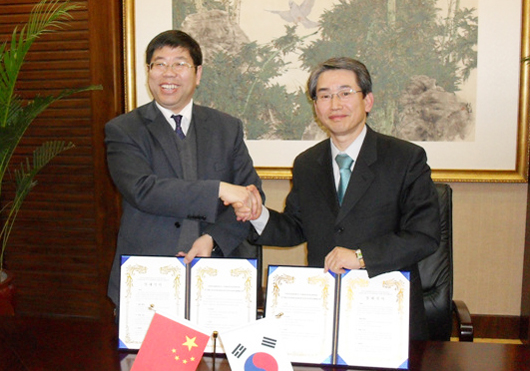 한국농촌경제연구원(원장 오세익)은 지난 17일 중국 북경에서 중국농업부 ‘정보중심’과 업무협력 협정(MOU)을 연장했다. 이번 조인식에는 김정호 농업관측정보센터장이 참석해 중국 측의 꿔주오유(郭作玉) 주임과 양해각서를 교환<사진>했다. |