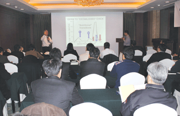 이날 세미나에서 에드워드 모란(Ed Moran) 미국 어번(Auburn)대학교 교수는 ‘단백질 소화대사와 효소제 첨가의 장점"과 ‘육계의 생리와 효소제의 필요성"이라는 주제로 강연했다. 이어 YJ 류(YJ Ru) 대니스코사 박사는 ‘차별화된 파이타제 제품"을 소개했다. 씨티씨바이오는 지난 2003년부터 대니스코사 인분해 효소제인 ‘파이자임 XP 1000G"와 ‘파이자임 TPT 1000G"를 판매해 오고 있다. 이재환 씨티씨바이오 차장은 “환경문제가 대두됨에 따라 파이타제는 사료에 꼭 필요한 첨가제로 인식되고 있다. 세계 인분해 효소제 시장을 이끌고 있는 대니스코사 파이타제를 통해 시장활성화를 도모하는 것은 물론 국내 축산환경 개선에도 기여토록 최선을 다하겠다"고 말했다. |
