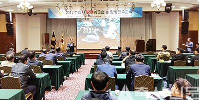 충청남도수의사회(회장 전무형)는 지난달 24일 예산군 덕산면 리솜스파캐슬 루비노홀에서 오형수 충청남도 축산과장과 김인순 가축위생방역지원본부 충남도본부장 및 회원들이 참석한 가운데 2017년도 수의사방역워크숍 및 임상연수교육<사진>을 실시했다.