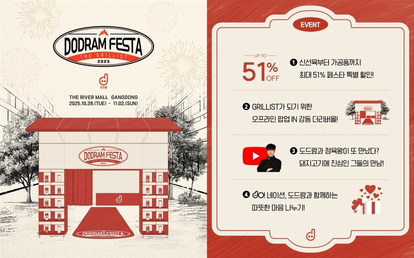 올해로 3회째를 맞는 도드람 페스타는 오프라인 팝업스토어, 온·오프라인 할인 프로모션, 유튜버 정육왕 협업 콘텐츠, 도네이션 프로그램 등을 통한 소비자 참여형 브랜드 체험의 축제다.