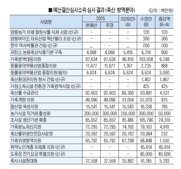 [축산신문 김수형 기자] 농림축산식품부의 내년도 예산안이 국회 농해수위 단계를 통과했다.