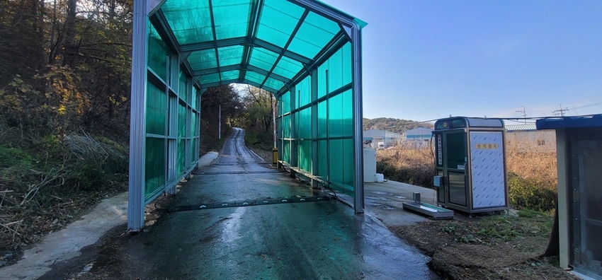 윤 대표는 땅 소유주에게 직접 허락을 받고, 농장 진입로에 개인 비용으로 방역 초소를 설치했다. 전기, 상·하수도 등 시설을 자비로 마련했다. 지자체의 지원 없이 순수한 농장 차원의 ‘자체 방역’이었다.
