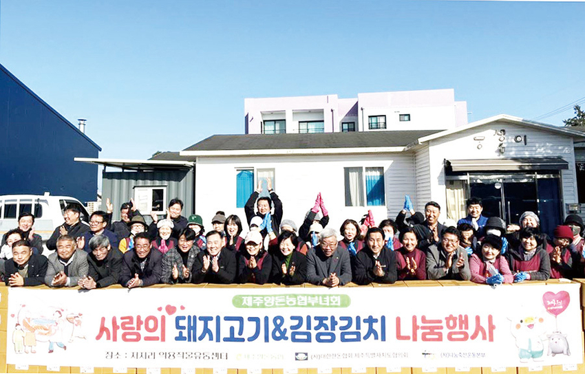 이번 행사는 제주양돈농협부녀회가 주관하고 제주양돈농협·대한한돈협회 제주특별자치도협의회(회장 김재우)·나눔축산운동본부 제주도지부가 후원했으며, 제주 돼지고기 소비 촉진 및 지역사회 복지 지원을 위해 마련된 연말 상생 나눔 프로그램이다.이번 나눔행사는 한경면 저지리 약용작물유통센터에서 진행됐으며, 제주양돈농협부녀회원·제주양돈농협 임직원 등 약 100여 명이 참여해 뜻 깊은 시간을 함께했다. 나눔 물품은 김장김치 1천100포기와 돈가스 700kg, 돼지고기 전지 170kg,후지 170kg으로 제주도 전 지역 사회복지기관 및 취약계층 가구에 지역별로 골고루 전달됐다.이날 행사에는 김애숙 제주특별자치도 정무부지사, 고우일 농협중앙회 제주지역본부장, 김재우 대한한돈협회 제주특별자치도협의회장, 고권진 제주양돈농협 조합장 등이 참석해 격려와 응원을 전했다.