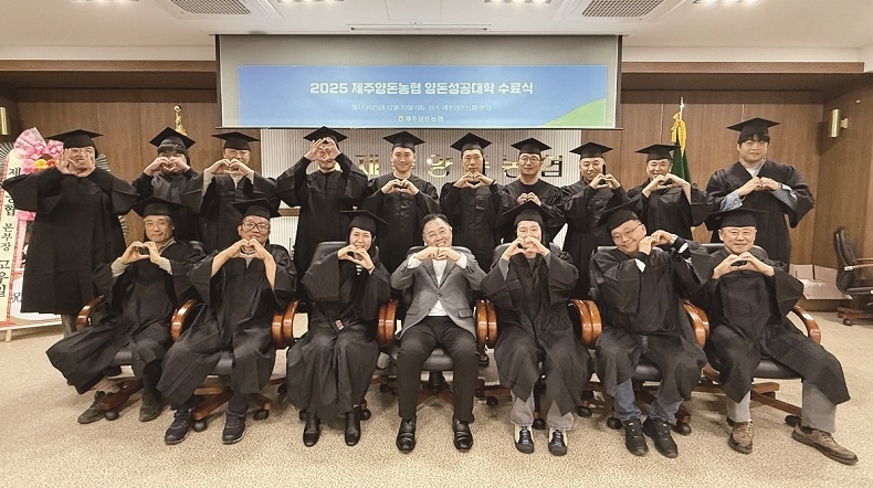 [축산신문 윤양한 기자] 제주양돈농협(조합장 고권진)은 구랍 23일 본점 대회의실에서 교육생 및 임직원 40여명이 참석한 가운데 ‘2025년 제주양돈농협 양돈성공대학 수료식’<사진>을 개최했다.