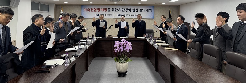 한국사료협회(회장 허영)와 회원사 일동은 지난 1월 27일 정기 이사회를 개최하는 자리에서 ‘가축전염병 예방을 위한 차단방역 실천 결의대회’<사진>를 갖고, 방역의 중요성을 알렸다.