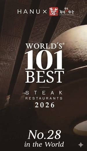 ‘2026 101대 스테이크 레스토랑’은 런던의 ‘어퍼 컷 미디어 하우스’의 주관으로 전 세계 수천 개의 스테이크 하우스를 대상으로 육질, 커팅, 서비스 등 엄격한 기준을 통해 선정하는 권위 있는 지표다.