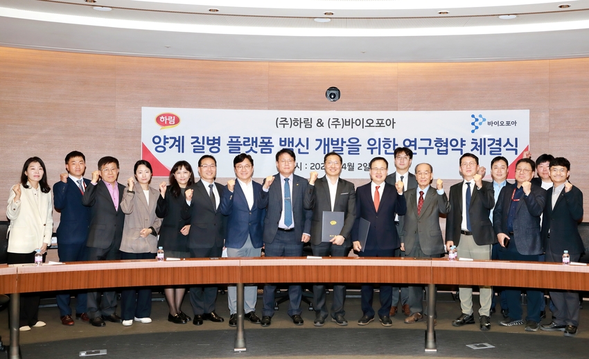 정호석 하림 대표이사는 “하림의 세계 최고 수준 사육 인프라, 바이오포아의 첨단 플랫폼 기술, 한국썸벧을 통한 성공적인 시장 보급은 대한민국의 가축 방역과 식품 안전에 새로운 지평을 여는 이정표가 될 것”이라고 강조했다.