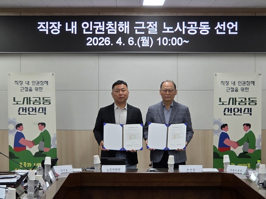 노사는 선언에 그치지 않고 실질적인 인권 보호 체계 강화를 위해 예방 중심 교육 확대, 신고 및 피해자 보호 체계 강화, 공정하고 투명한 조사 시스템 운영 등을 지속적으로 협력해 추진할 방침이다.