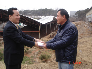 경기도 평택소재 권무하 조합원과 심응래 조합원은 설 명절을 앞두고 계분장 지붕이 무너지는 폭설피해를 봤다. 경북 칠곡에 있는 우희진 농가는 전기누전에 의한 화재피해를 입었다. 오정길 조합장은 “이러한 재난을 이겨내고 더욱 더 큰 성공이 뒷받침되는 양계인들이 됐으면 한다”고 아픔을 같이 나눴다. |