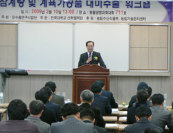 농림수산식품부 축산경영팀의 임지헌 주무관도 ‘양계산업의 정책방향’이라는 정책발표를 통해 수출 활성화에 적극적인 지원을 아끼지 않을 것임을 약속했다. 이날 행사에서는 또 건국대 김정주 교수의 ‘한·미 FTA와 삼계탕 수출 가능성’이란 주제발표가 이뤄졌다. 국립수의과학검역원 운재호 사무관과 황인진 사무관의 ‘대미수출을 위한 삼계탕의 검사지침과 기준규격’ 및 ‘도계장의 HACCP 관리’에 대한 주제발표도 각각 이어졌다. (주)마니커의 정지상 상무와 (주)하림의 이명우 실장이 ‘대미 삼계탕 수출을 위한 업체의 대응전략’에 대해 각각 사례를 발표, 관심을 모으기도 했다. 이날 참석자들은 “삼계탕 수출 관련 정보 교환과 함께 대미수출시 애로사항 해소에 힘을 모으자"고 입장을 같이했다. |