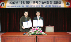 농촌진흥청(청장 김재수)은 지난달 26일 수원 소재 국립축산과학원 축산생명환경부 대강당에서 전국 6개 도, 8개 전문 종계장과 ‘우리맛닭’의 종계 관련 기술 이전식<사진>을 가졌다. 우리맛닭은 100% 순수형질 고정에 성공한 재래닭 순계와 국내 토착 육용계를 기초로 육성, 출시에 성공한 토종닭이다. 이번에 기술이전을 받은 종계장들은 각 도 농업기술원과 관할지역 농업기술센터의 추천을 받고 국립축산과학원 연구개발성과 사용 심의위원회에서 시설규모, 실용계 공급능력, 종계장 운영경력 등에 대한 엄격한 평가를 거친 곳들이다. 특히 사육기반의 적격성을 인정받은 종계장으로서 올해 11월까지 2만 1천수 내외의 ‘우리맛닭’ 종계가 분양될 예정이다. 축산과학원 서옥석 가금과장은 “앞으로 2012년까지 ‘우리맛닭’의 산업계 공급물량을 600만수까지 늘리기 위해 기술이전 업체의 조기 확대, 대형 종계장이 참여한 계열화 사업추진 등 다양한 방안을 검토해 나갈 계획”이라고 말했다. 이번에 분양이 이뤄진 종계장은 ▲경기도 대정농장(1천300수) ▲충남 혜선농장 (3천200수) ▲경북 하복농장(1천700수) ▲경남 엘림농장(1만500수)·초록매실농장(900수), 생명환경농업연구소(200수) ▲전남 축산시험장(200수) ▲전북 우슬제농장(3천300수) 등이다. 한편 이날 우리맛닭 종계의 산업적 이용가치 제고를 위한 토론회에서는 ▲‘우리맛닭’ 종계의 개발의미와 비전(국립축산과학원 서옥석 가금과장), ▲생산자 입장에서의 산업적 가치(엘림농장 김홍명 대표) ▲소비자 입장에서의 식재료 가치(한식명인 옥치민 리츠호텔 조리부장)에 대한 주제 발표가 있었으며 수원 소재 리츠 호텔에서 ‘우리맛닭’ 시식회도 이어졌다. |