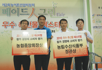 지난달 29일부터 8월 1일까지 4일 동안 서울 삼성동 코엑스 3층 D홀에서 열린 ‘우수축산물 페스티벌’에는 75개 축산물 브랜드 경영체들이 참가했다. 4일 동안 전시회장을 찾은 소비자들의 설문조사와 평가 결과 1위 브랜드에는 ‘참예우’가 선정돼 지난 1일 페스티벌 메인무대에서 진행된 폐막식에서 농림수산식품부 장관상을 받았다. 2위에 선정된 ‘청풍명월한우’는 농협중앙회장상을 받았다.