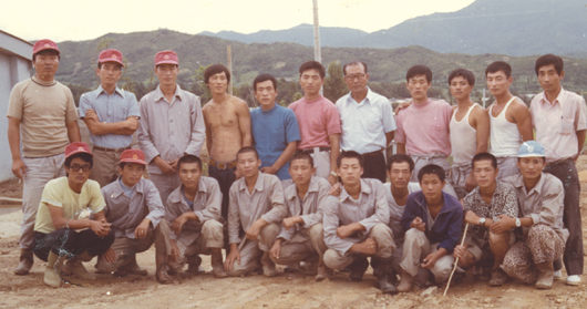 - 용인자연농원 양돈부 초창기 멤버들. 뒷줄 왼쪽 두번째 필자, 일곱번째는 이병도 박사(부장).