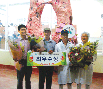 경락가 2만1천원 은기농장 최우수상 차지 불황에 위축되기 보다는 오히려 공격적 마케팅을 통해 시장확대에 나선 유명한우브랜드의 행보가 눈길을 끌고 있다. 안성마춤한우회(회장 김창규·별빛농장 대표)는 지난 9일 도드람안성축산물공판장에서 브랜드경진대회를 개최했다. 브랜드 출범이후 처음 열린 이날 경진대회에는 안성마춤한우회 소속 23개 농장 105두가 출품, 자웅을 겨룬 결과 은기농장(대표 김희종, 대덕면 내리) 출품우가 최우수상을 수상했다. 지육체중 431kg, 등지방 16mm로 1++B등급을 받은 이 소는 브랜드상장을 통해 지육kg당 2만1천11원에 낙찰됐다. 우수상은 지육체중 409kg, 등지방 9mm로 1++A등급을 받은 초원목장(대표 이규홍) 출품우에게, 장려상은 지육체중 446kg, 등지방 9mm에 역시 1++A등급을 받은 안성마춤한우촌(대표 안병호) 출품우에게 돌아갔다. 우수상 수상우는 1만8천38원, 장려상의 경우 1만7천699원의 경락단가를 각각 기록했다. 이날 행사는 그러나 결과를 떠나 불황 속에서도 최대 축산단지인 안성을 기반으로 하는 안성마춤한우의 우수성을 전국의 중도매인에게 널리 홍보, 브랜드 인지도 제고와 함께 시장의 저변을 확대하려는 한우농가들의 자구노력이라는 점에서 의미가 큰 것으로 평가되고 있다. 안성마춤한우회 김창구 회장은 “연간 5천두를 넘는 소를 출하해 온데다 국내 양대 백화점에 입점해 있는 유일한 브랜드임에도 그동안 제대로 홍보를 하지 못했다”며 “극심한 불황속에 자포자기 하기보다는 보다 적극적인 대응으로 불황을 극복함으로써 위기를 기회로 만들어야 한다는 공감대가 회원들 사이에 형성, 그 일환으로 브랜드 경진대회를 갖게 됐다”고 설명했다. 그는 이어 앞으로도 시장확대를 위한 다각적인 노력을 전개해 나갈 것이라고 덧붙였다. 안성마춤한우회는 안성시 공동으로 오는 23일 안성시 농업기술센터에서 친환경선포식을 겸한 브랜드경진대회 시상식을 가질 예정이다. |