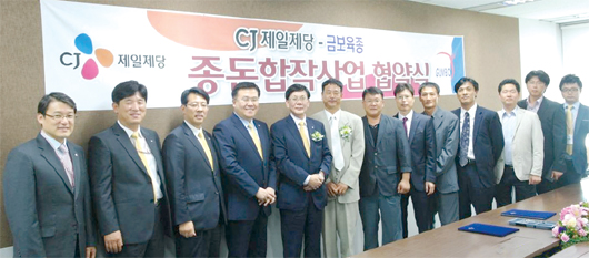 글로벌 사료·축산회사인 CJ제일제당 사료사업부문(부문장 유종하)과 최고의 한국형 종돈 회사인 금보육종(대표 장성훈)이 지난달 29일 CJ제일제당빌딩에서 종돈합작사업 협약을 체결했다. 이날 협약식<사진>은 김병하 돈돈팜 대표의 경과보고를 시작으로 협약서 서명, 기념촬영 순으로 진행됐다.