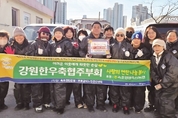 [축산신문 홍석주 기자] 강추위 속에서도 주부회원들이 어려운 가정을 찾아 직접 연탄을 나르며 이웃 사랑을 실천했다. 강원 속초양양축협 강원한우 축협주부회 속초지회(회장 신주연)는 지난 6일 속초시 부월 1길에서 회원 20여 명이 참여한 가운데 연탄 나눔 봉사활동<사진>을 펼쳤다. 이날 봉사에는 이양중 속초양양축협 조합장과 함현식 조양지점장도 함께했다. 주부회는 속초양양축협의 협조로 속초시 관내 취약계층 독거노인 등 5가구에 가구당 200장씩, 총 1천장의 연탄을 전달했다. 영하의 강추위 속에서도 회원들은 이웃의 따뜻한 겨울나기를 바라는 마음으로 봉사에 나섰다. 신주연 회장은 “작은 정성이지만 지역 이웃들에게 따뜻한 위로가 되길 바란다”고 말했다. 강원한우 축협주부회는 행사나 봉사활동 시 음료와 다과를 제공하며 강원한우의 청정성과 우수성을 알리는 데에도 힘쓰고 있다. 특히 관광객이 많이 찾는 속초 지역에서 지역 한우 홍보 활동을 꾸준히 전개하고 있다. 2022년 창단된 강원한우 축협주부회는 현재 63명의 회원이 활동 중이며, 다양한 봉사활동을 통해 지역사회와 함께하는 나눔을 실천하고 있다. 축산신문, CHUKSANNEWS
