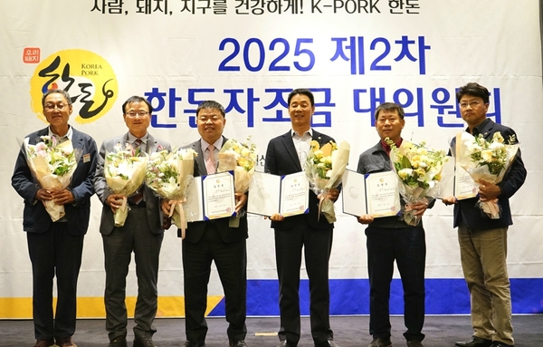 [축산신문 이일호 기자] 도드람양돈농협(조합장 박광욱)이 ‘2025년 한돈인 한마음대회’에 총 2천만원의 후원금을 전달했다. 한돈 산업의 발전과 상생을 위한 지원 활동의 일환이다. 도드람양돈농협에 따르면 대한한돈협회 전북도협의회(회장 방대섭)가 지난 4일 개최한 ‘제9회 전북도 한돈인 한마음대회’에 이어 오는 21일 예정된 한돈협회 전남도협의회(회장 오재곤)의 ‘제8회 전남 한돈인 한마음대회’에 각 1천만원씩 후원금을 전달<사진>했다. 도드람양돈농협 박광욱 조합장은 “조합원과 임직원의 뜻을 모아 마련한 기금이 한돈 산업의 발전과 한돈인의 권익 향상에 기여하길 바란다”며 “앞으로도 도드람은 지역사회와 함께 성장하며 사회적 책임을 다하는 협동조합으로서의 역할을 충실히 수행하겠다”고 밝혔다. 축산신문, CHUKSANNEWS
