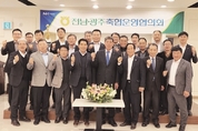[축산신문 윤양한 기자] 전남광주축협운영협의회(회장 한종회·해남진도축협장)는 지난 20일 목포 녹색한우프라자 회의실에서 정례회의<사진>를 열고, 협의회장을 비롯한 임원 선출과 농협중앙회 대의원을 선출했다. 이날 회의에서는 차기 협의회를 이끌어갈 회장에 정삼차 화순축협 조합장이 새로운 회장으로 선출되었으며, 부회장에는 김형조 곡성축협 조합장이 선출됐다. 협의회 부회장으로 직무를 수행해오다 이번에 선거 없이 조합장들의 추대로 선출 된 정삼차 회장은 인사말에서 “협의회장직을 맡겨주신 동료 회원조합장님 모두에게 감사드린다”며 “주어진 임기동안 화합과 통합을 바탕으로 협의회가 축협과 축산업 발전에 큰 역할을 할 수 있도록 열심히 하겠다”고 소감을 밝혔다. 이어진 농협중앙회 대의원선거에서는 협의회장으로서 당연직 대의원인 정삼차 조합장(화순축협)과 문만식 조합장(목포무안신안축협), 이맹종 조합장(영암축협), 김형조 조합장(곡성축협), 박계수 조합장(여수축협), 정을성 조합장(담양축협), 김용출 조합장(영광축협)이 각각 선출됐다. 이달 31일 임기를 마치게 되는 한종회 회장은 “지난 임기동안 사료비 상승, 가축질병 등 유래 없는 격동의 시기에 협의회가 흔들림 없