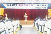 [축산신문 심근수 기자] 한국가축인공수정사협회 경상북도지회(지회장 정형식)와 울산시지회 공동 주관으로 지난 9월 26일 경북농업인회관 대강당에서 ‘2025년도 경상북도 가축인공수정사 보수교육’<사진>이 실시됐다. 이날 교육에는 중앙회 송한수 회장을 비롯해 대구·경북 및 울산광역시 가축인공수정사와 관계자들이 참석해 높은 관심을 보였다. 정형식 지회장은 인사말에서 “올해 보수교육을 울산시지회와 공동 주관하게 돼 개업 수정사와 수의사(개량농가)들에게 큰 도움이 될 것으로 기대한다”면서, “보수교육은 가축 개량 정책과 수정란 이식 기술 향상, 수태율 제고를 통해 농가 소득 증대에 기여하는 데 목적이 있다”고 강조하며 회원들의 적극적인 참여를 당부했다. 이날 교육은 현장 실무와 정책 방향을 아우르는 내용으로 구성됐다. ▲경북도 동물방역과 박인화 팀장이 경북 동물방역 정책을, ▲경북도 축산정책과 이준규 과장이 경북 축산정책 방향을, ▲한국종축개량협회 양신철 경북본부장이 가축개량 실현 방안을, ▲경북축산기술연구소 주영호 박사가 소 번식률 향상 대책을, ▲경북축산기술연구소 김도윤 박사가 수정란 이식 기술을 각각 강의했다. 특히 매 강의 말미에는 가축전염병 예방