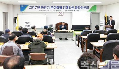 부여축협(조합장 정만교)은 내년도 조합사업 계획 수립을 앞두고 지난 13일 조합회의실에서 2017년도 하반기 임·대의원 분과위원회<사진>를 열어 조합원들의 의견을 수렴했다.