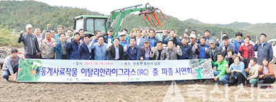 이번 동계사료작물 파종은 양질의 사료작물로 평가받고 있는 IRG를 벼가 서 있는 상태에서 파종하는 것으로 싹을 잘 트게 하고 가을에 충분히 자라게 해 안전한 월동으로 수확량을 늘리는 한편, 축산농가와 경종농가의 사료작물 재배확대를 위해 실시됐다. 총 360농가가 참여해 300ha에 파종을 실시했다.