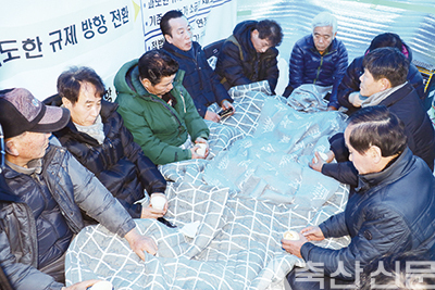“생존권을 보장해 달라”는 축산인 요구가 그렇게 부당한 것일까. 축산인들이 엄동설한에 차디찬 아스팔트 바닥에서 이렇게 며칠째 천막농성을 하고 있지만, 정부는 여전히 ‘나 몰라라’다. 지난 25일 어렵게 성사된 김영록 농림축산식품부 장관과 면담에서도 “유예기한 연장은 없다”라는 기존 입장만을 확인할 수 밖에 없었다. 장관과 면담을 마친 뒤 축산단체장들이 천막농성장으로 다시 돌아와 대책회의를 갖고 있는 모습이 3월 24일 이후 벌어질 축산인들과 오버랩 된다.