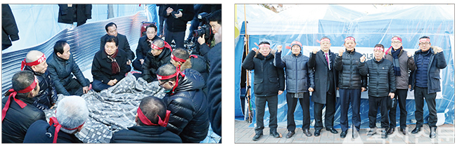 이날도 농성장에는 농축산관련 단체들과 기관들의 방문이 이어졌다. 한국종축개량협회 이재용 회장과 친환경축산협회 이교훈 회장이 농성장을 방문해 무허가축사 적법화 기한연장을 통해 축산의 희망을 이어가길 격려했다. 한국단미사료협회 박해상 회장, 국민농업포럼 정기환 상임대표, 하림 이문용 대표이사, 가금유통사업단 이종철 사장, 카길애그리퓨리나 임직원, 대한한돈협회 경남양돈농가, 대한양계협회 천안·순천 육계지부, 충남도지회 관계자들도 방문, 이들을 격려하고 힘을 보탰다.