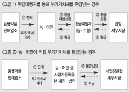‘농ㆍ축산ㆍ임ㆍ어업용 기자재 및 석유류에 대한 부가가치세 영세율 및 면세 적용 등에 관한 특례규정(대통령령 제20630호)’개정에 따라 축산농가는 지난달 22일부터 판매되는 동물용의약품에 대해 부가가치세를 환급받을 수 있게 됐다. 이에 따라 축산농가는 세금계산서, 농ㆍ어민확인서 등 관련서류를 챙겨 대행자 또는 세무서 등에 신고해 제품구입시 포함됐던 부가가치를 돌려받으면 된다. 정부는 이를 통해 축산농가들이 연간 400억원 정도의 생산비를 절감할 수 있을 것으로 보고 있다. 부가가치세 환급 절차는 다음과 같다. ◇환급대행자를 통해 부가가치세를 환급받는 경우(그림1 참조) ▲동물약품 판매업소는 동물약품의 품목과 수량을 각각 구분 표시해 세금계산서 발행 ▲환급을 받고자하는 농ㆍ어민은 동물약품 구입일이 속하는 분기말 또는 그 다음 분기말의 다음달 10일까지 환급대행신청(세금계산서, 농ㆍ어민확인서 첨부) ▲환급대행자는 환급대행신청기한 종료일부터 15일 이내에 관할 세무서장에게 환급 신청(매입세금계산서 합계표, 환급신청명세서 첨부) ▲환급신청을 받은 관할 세무서장은 환급신청기간 종료일부터 20일 이내에 환급대행자에게 환급 ▲환급대행자는 환급세액을 받은 날로부터 5일 이내에 농ㆍ어민에게 지급해야 하며, 이 경우 환급대행자는 소정의 환급대행수수료를 차감하고 지급할 수 있음. ◇농ㆍ어민이 직접 부가가치세를 환급받는 경우(그림2 참조) (관할 세무서장에게 직접 환급 신청할 수 있는 자의 범위 : 부가가치세 환급대상 농ㆍ어민에 해당하는 자중 ‘부가가치세법’ㆍ’소득세법’ 또는 ‘법인세법’의 규정에 따라 사업자등록을 한 개인 또는 법인) ▲동물약품 판매업소는 동물약품의 품목과 수량을 각각 구분 표시해 세금계산서 발행 ▲환급을 받고자하는 농ㆍ어민은 동물약품 구입일이 속하는 분기말 또는 그 다음 분기말의 다음달 25일까지 관할 세무서장에게 환급신청(부가가치세법제20조 규정에 의한 매입처별세금계산서합계표, 경작확인서 또는 조업확인서 첨부) ▲환급신청을 받은 관할 세무서장은 환급신청기간 종료일부터 20일 이내에 환급 |