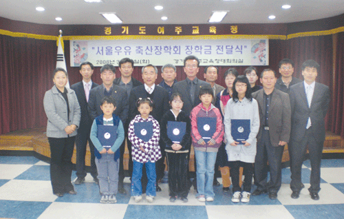 이날 이환구 회장은 인사말을 통해 “소년소녀 가장에게 다소나마 도움을 주기 위해 서울우유로 납유하는 회원들이 1인당 연간 2만원씩 모금하고 여주축산계 자금을 포함, 5백만원의 장학금을 마련하게 됐다”고 전제하고 “이 사업은 앞으로 서울우유가 존재하는 한 계속 추진하겠다”고 덧붙였다. 여주교육청 박일순 학무과장은“낙농경영이 어려운데도 장학재원을 마련해준데 대해 고맙다”고 말하고 “장학금 수혜학생들은 앞으로 공부를 열심히 하여 사회에서 큰 역할을 해 줄 것”을 당부했다. |