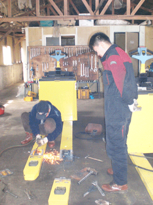 춘파용 종자를 파종하거나 지난해 가을에 파종한 사료작물을 수확하는데 여념이 없는 계절이다. 따라서 축산인은 겨우내 농기계창고에 넣어 두었던 농기계를 손질하고 어쩌다 수리를 할 기계는 가까운 농기계 수리점이나 전문공장에 의뢰한다. 사진은 경기도 이천시 신둔면 도봉리 소재 로더월드(대표 성영준)에 의뢰된 지게차를 이강철부장(오른쪽)과 최종섭기사가 국내 작업환경에 알맞게 설계 변경을 하고, 개조하는 모습이다. 번뜩이는 섬광이 지구라도 녹일듯하다.