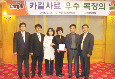 사료 교체 후 유량 23% 증가…연간 수익 7천만원 늘어 유질향상과 생산성 향상으로 희망을 주고 있는 카길사료의 우수농장인 유전목장(사장 김병국)이 주목받고 있다. 이에 따라 카길애그리퓨리나(대표이사:정학상) 33지구(영업이사:박기형)는 지난달 25일 진주동방호텔에서 우수농장<사진>에 대한 회의를 갖고 이 지역 낙농인들과 함께 정보를 공유했다. 이날 회의에서 박기형 이사는 “낙농업이 상당히 어려운 시기에 처해있지만 유량증가 및 체세포수 감소 등 유질의 향상과 생산성 향상을 통한 농가에 희망을 주기 위해 행사를 준비했다”고 설명했다. 김병국 유전목장 사장은 “오직 유질을 높이고 생산성 향상만이 살길이다!”며 농가의 노력 여하에 따라 충분히 세계적인 경쟁력을 가질 수 있다고 강조했다. 유전목장은 평균 두당 유량 31.5Kg, 체세포 14만, 유지방 4.1의 성적을 꾸준히 유지하면서 향후 목표로 평균 두당 유량 35kg, 체세포 10만, 유지방 4.2의 목표로 최선을 다해 목장을 운영하고 있다. 반종국 카길애그리퓨리나 축우특판부장은 “현재 낙농산업은 5천호정도만 생존경쟁에서 살아남을 수 있다고 강조하면서 오직 생산성향상만이 지속적으로 수익을 창출하며 생존경쟁에서 살아남을 수 있다”고 강조했다. 반 부장은 생산비를 줄이기 위해 저영양 사양을 한다면 번식문제를 야기시키며, 높은 도태로 인해 추가 육성우에 대한 비용이 지속적으로 발생함에 따라 악순환이 계속된다고 역설하면서 생산성향상에 대한 중요함을 강조했다. 반 부장은 특히 21C낙농발전방안으로 적절한 영양상태·번식문제·건강도 유지의 3가지를 제시했다. 권오진 부장은 유전목장 소개에서 “교체 전 목장경영에 상당한 어려움을 겪었으나, 2006년 9월 카길로 사료를 교체 후 유량이 23% 증가하고 체세포 수도 급격히 줄어서 연간 7천만원의 수익을 더 올리게 됐다”고 소개하면서 지속적인 성적 개선만이 즐거운 농장, 희망찬 농장이 되는 길임을 강조했다. |