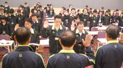 ‘Realize 9000’에는 올해 경제사업 규모 150억원 달성, 상호금융사업 규모 8천750억원 달성, 공제사업 규모 100억원을 달성하겠다는 의지가 담겨 있다는 설명이다. 조상균 조합장은 이날 “자본시장통합법으로 인해 금융권 전체가 무한경쟁에 돌입했다”며 “신용사업 발전을 위해 임직원 모두의 부단한 노력이 필요하다”고 말했다. 또 “올 가을 준공 예정인 안성종합식품공장은 고부가가치 양봉산물 생산과 유통시대를 여는 중요한 전환점이 될 것”이라고 말했다. 이번 워크숍 첫날에는 비전선포식에 이어 외부특강과 정기이사회가 열렸으며, 둘째 날에는 등반대회를 통해 임직원 간 화합을 다졌다. |