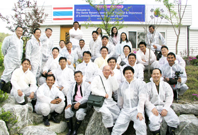 한국종축개량협회(회장 조병대)는 최근 태국 정부 및 양돈업계 관계자를 초청, 한국 종돈의 우수성과 앞선 기술력을 소개했다. 현지 정부고위관계자와 생산자단체 및 학계 대표, 대형종돈장 경영자등으로 구성된 이번 태국 방문단은 지난 14일부터 17일까지 4일간 강원도 원주의 금보육종과 대한양돈협회 종돈능력검정소(경기도 이천) 등에 대한 시찰을 통해 청정화된 최첨단 사육현장과 종돈개량시스템 등을 직접 확인했다. 지난 15일 이천 미란다호텔에서 가진 ‘한·태 종돈세미나’ 에서 수라차이 태국양돈협회장은 “검정소 경매에서 종돈한마리에 수백만원에 팔릴 정도로 그 우수한 능력과 개량수준을 짐작할수 있었다”며 한국산 종돈을 치켜세웠다. 그러면서 양국간 생산자단체를 중심으로 한 가칭 ‘아시아돈육협회(APA, Asia Pork Association)’ 설립을 통한 양국간 교류를 제안하기도 했다. 태국 2위 기업인 베타그로그룹 수친 대표와 카제사트대학 수리수완 교수 역시 한국종돈이 자국의 종돈개량에 큰 도움이 될 것 같다며 기대를 감추지 않았다. 이들의 방한 기간동안에는 국립수의과학검역원과 종돈수입을 위한 검역위생조건 협의도 이뤄짐으로써 양국간 교류가 보다 구체적으로 추진될 전망이다. 종개협 김윤식 종돈개량부장은 “이번 방문이 오는 8월경 한국 종돈의 태국종돈검정소 출품 실현에 밑거름이 될 것으로 기대한다”고 밝혔다. |