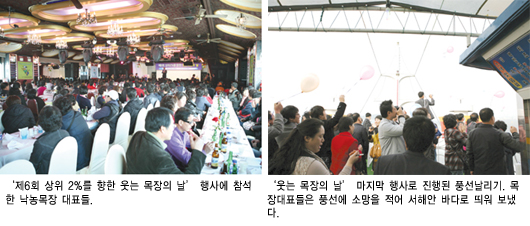 이어 그 외에 많은 낙농산업의 문제를 해결하기 위해서는 어느 개인의 노력이 아닌 관계되는 모든 사람의 염원과 노력이 합해져야 한다고 강조했다. 그 염원을 합하는 출발점으로 ‘희망풍선 날리기’로 행사를 마무리했는데 그것은 희망풍선에 2011년의 꿈과 희망을 적어서 2010년 있었던 답답했던 마음을 모두 바닷바람에 날려 보내버리면서 어려운 내년 경영여건을 참석자 모두의 지혜를 이끌어 내는 의미가 있는 눈물이 찡한 장면이었다.