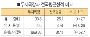 또한 10월초까지 계속된 무더위로 유대수취가격 또한 낮아서 실제로 목장주들의 수익도 많이 낮아진 것을 모두가 실감할 것이다. 두지목장의 선전은 이런 어려운 환경 속에서 이룬 결과이기에 더욱 빛이 난다. 두지목장의 성적 발표 내용을 보면 2010년 8월 기준으로 유량 33.8리터, 유지율 4.0%, 유대단가 869.83원의 생산성을 올렸다. 이 성적을 같은 기준의 전국평균과 비교해보면 확연한 차이를 보인다. 2010년 8월 기준으로 전국평균 유량은 26.1리터, 유지율 3.74%, 유대단가는 817.1원이었다. 이는 같은 규모(약 30 두)의 목장의 전국평균과 비교하면 월 7백50만원, 1년이면 9천만원 이상의 수익을 올리는 것이다. 두지목장의 이 같은 생산성 결과 중에서 특히 주목할만한 점은 가장 더웠던 8월에도 유량과 유지율을 떨어뜨리지 않고 유지했다는 점이다. 대개는 덥고 습한 날씨의 영향을 많이 받아 여름철에는 성적이 떨어지는 것을 당연시 해 왔다는 것이 사실이다. 그러나 두지목장의 성적은 이런 습관적인 생산성 저하를 바로 잡았다. 두지목장의 정용국 사장은 “낙농을 18년 동안 하면서 요즘처럼 신바람 났던 때가 없다”며 선진의 보스 하나로믹스 덕분이라며 고마움을 전했다. 보스 하나로믹스는 선진의 신개념 TMR 배합사료다. 보스 하나로 믹스는 부산물을 사용하지 않고 조사료 2~3가지만 배합하여 급여할 수 있도록 만든 제품이라 목장의 일손을 덜 수 있다는 장점을 가지고 있다. 또한, 품질 면에서도 품질변이가 큰 부산물을 사용하지 않게 됨으로 TMR 품질을 균일하게 확보하여 정밀사양이 가능하다고 한다. 이 같은 점 때문에 날씨와 같은 외부 요인과 관계없이 일정하게 높은 성적을 낼 수 있었다고 전한다. 선진은 이번 두지목장과 같이 낙농을 하면서 즐겁고 신바람 나는 목장들을 지속적으로 만들 계획이다. 외부의 상황은 축산이 어려운 산업이라고들 하지만 40년 가까이 직접 축산업을 운영하고 있는 선진은 충분히 희망이 있다고 생각하고 구체적인 비전도 그리고 있다. 특히 낙농에 대해서는 ‘목장의 생산성 향상을 통한 여유 萬萬의 행복 실현’ 캠페인을 실시하고 있다. 착유우 두당 총 사료비 공제수익 1만원/일, 305일령 산유량 1만kg을 목표로 하여 목장의 수익을 창출하여 우리 낙농이 세계와 겨루어도 손색이 없는 생산성으로 희망을 만들겠다는 내용이다. 선진의 이 같은 노력이 제2, 제 3의 두지목장으로 이어질지 귀추가 주목된다. |